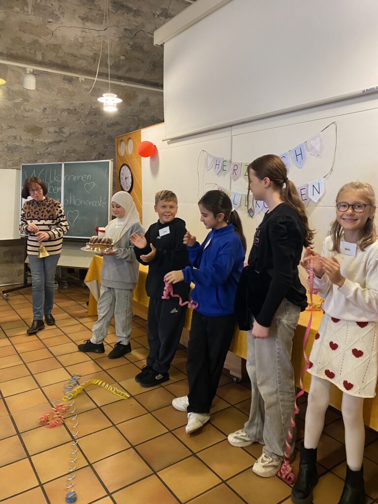 Am 7. Oktober öffnete das Café zum ersten Mal in diesem Schuljahr seine Türen. Diesmal mit neuer Besetzung: Die Klasse 5 übernimmt das Projekt als Klassenaufgabe. Während einige Schülerinnen und Schüler im Café die Gäste bewirten, kümmern sich andere im Hintergrund um verschiedene Vorbereitungen und Aufgaben.